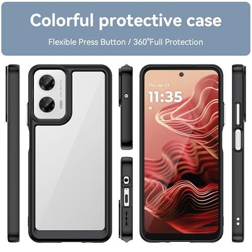 BOKYAS - جراب موبايل كريستال مضاد للاصفرار والصدمات من السيليكون الناعم مضاد للخدش مع ممتص للصدمات من البولي يوريثين الحراري وظهر من البولي كربونات لموتورولا موتو G35 من بوكياس - أسود