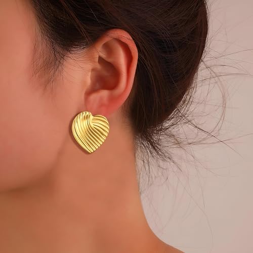 Generic - اقراط ذهبية جريئة - قطع هندسية مكتنزة مصنوعة من مادة مطلية بالذهب من اجل الاناقة اليومية