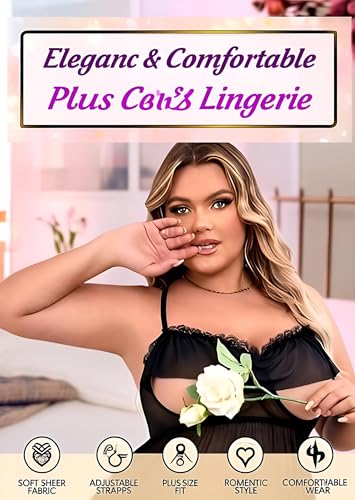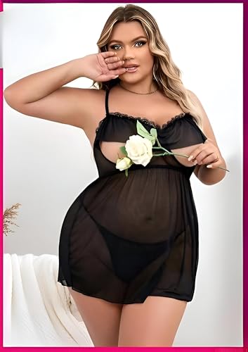 Generic - مجموعة بولد لانجري - ملابس نوم شفافة مثيرة مع فتحات امامية وخلفية لبيبي دول لمظهر ساحر ومريح حتى 125 كجم