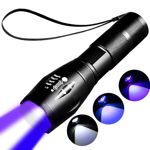 - ✅【مصباح يدوي بالأشعة فوق البنفسجية 395 نانومتر】يمكن لمصابيح الأشعة فوق البنفسجية الخاصة بنا العثور بسهولة على بقع الغرفة، ويمكنها اكتشاف الفطريات في الطعام والتحقق مما إذا كانت الفواتير والأوراق النقدية مزيفة، ويمكن حملها للكشف عن البقع في سيارتك أو إضاءة المعادن وفن الجسم والعقارب.