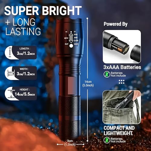 - ✅【تصميم متدرج】يمكن لمصباح LED 3 في 1 الخاص بنا ضبط مجال الرؤية والتحكم فيه. من خلال تمديد جسم المنتج وسحبه للخلف، يتم اختيار المصابيح الكاشفة الدائرية واستخدامها لإضاءة المساحات الكبيرة، أو استخدام ضوء ساطع للمراقبة لمسافات طويلة.