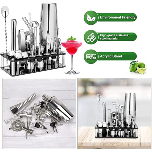 Bolivia's - مجموعة شيكر كوكتيل بوليفيا، 23 قطعة 750+550 مل، مجموعة نادل من الستانلس ستيل مع حامل وكتيب وصفات الكوكتيل، ادوات بار احترافية لخلط المشروبات، المنزل، بي ايه