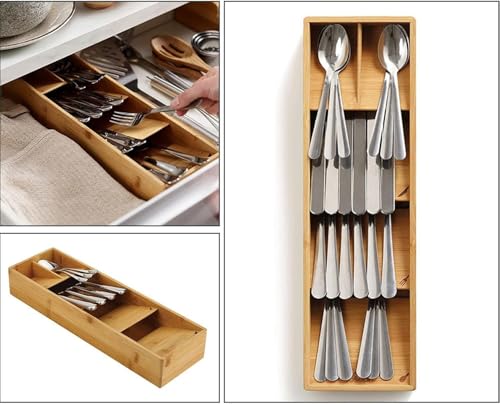 Bolivia's - منظم أدوات المائدة، مصنوع من خشب البامبو المتين، بقاعدة مانعة للانزلاق، لتخزين الملاعق والشوك والسكاكين، وإبقاء الأدراج منظمة بأناقة وفعالية في المطبخ من بوليفيا