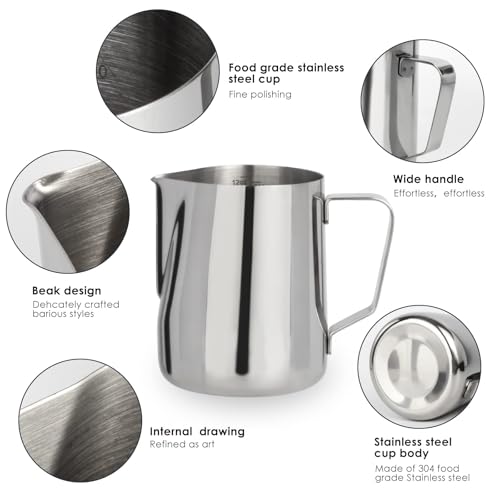 - 【الراحة】يحتوي إبريق رغوة الحليب هذا بسعة 12 اونصة على علامات قياس السائل داخل الكوب، سهل القراءة، مثالي لكوب أو كوبين من الكابتشينو أو الإسبريسو.