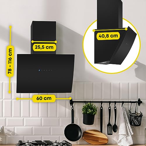 Bomann - شفاط بوتاجاز DU 7605 G بغطاء عمودي بدون رأس مع ميزة التحكم بالمستشعر وتحكم باللمس وفتح تلقائي من بومان، لون أسود