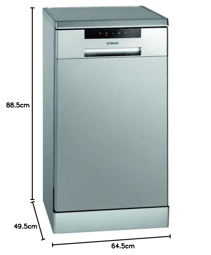Bomann - غسالة صحون 7409 من بومان جي اس بي، حامل/ قابل للتركيب اسفل/مستقل، شاشة LED، 45 سم، 10 إعدادات، 6 برامج، ستانلس ستيل [فئة الطاقة E]، (B0CFLXLKG9)