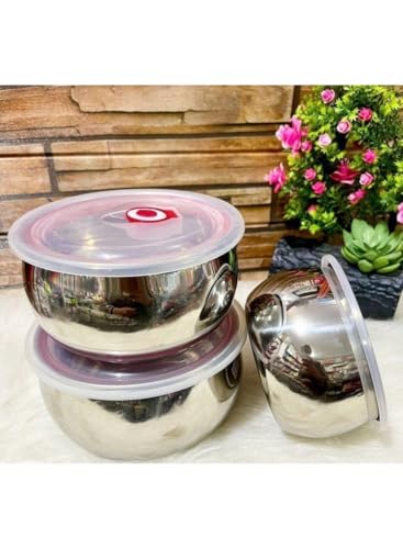 Generic - طقم علب تخزين طعام من فولاذ مقاوم للصدأ من بومباي - 3 قطع مع أغطية بلاستيكية