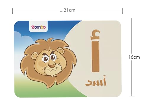 Generic - بومبو - كروت تعليميه للاطفال الحروف العربية - قابلة للمسح ومقاومة للمياه، مقاس 16×21 سم، عدد 28 كارت - فلاش كارد تعليمي للاحرف والكلمات عربي