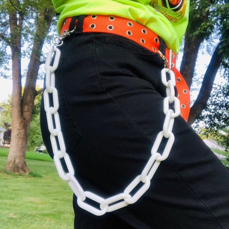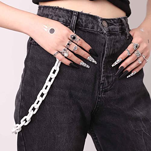 Bomine - سلسلة بناطيل جينز هيب هوب للرجال من الاكريليك بتصميم قوطي والنساء هيبستر سميك وسميك للجيب سلاسل مفاتيح وحزام وسلاسل للخصر اكسسوار للجسم للبنات اسود ابيض