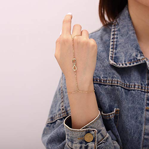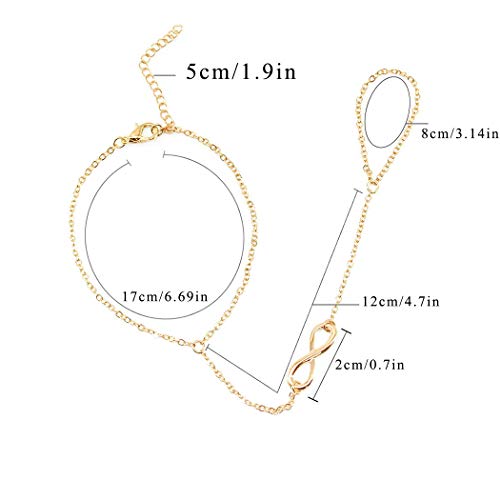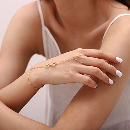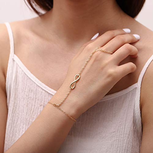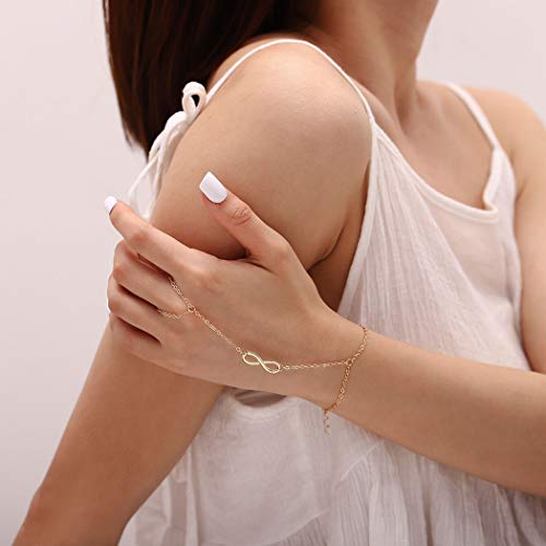 Bomine - اساور انفينيتي بتصميم خاتم وسلسلة يد للزفاف والشاطئ، مجوهرات للنساء والبنات (ذهبي)