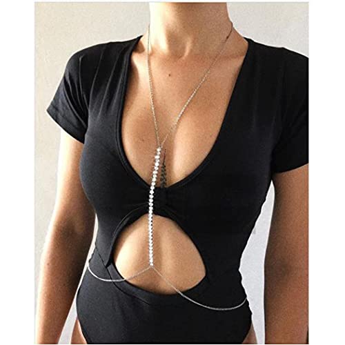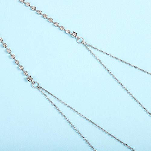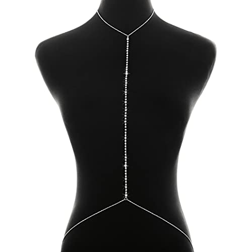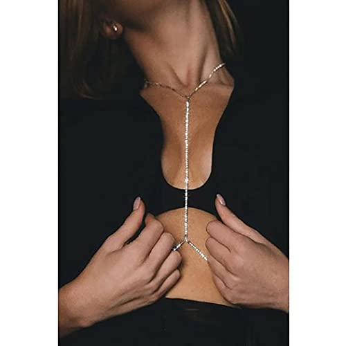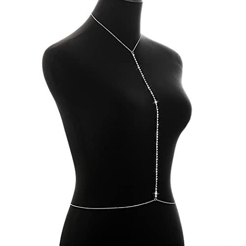 Bomine - سلسلة للجسم مرصعة بحجر الراين وحمالة صدر من الكريستال للبيكيني للنساء والفتيات (فضي)