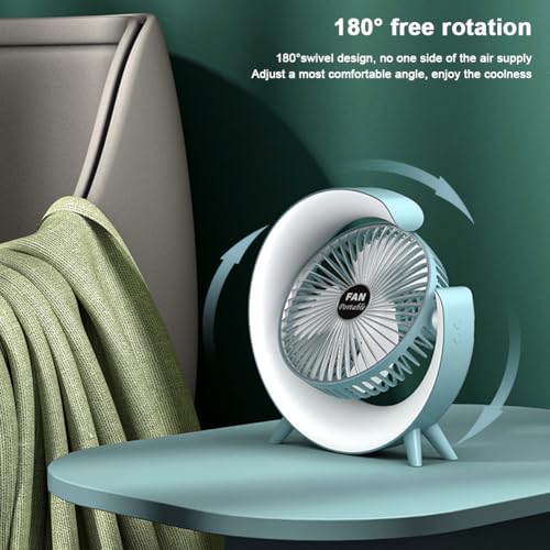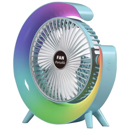 BomKra - مروحة مكتب صغيرة USB مع ضوء مزاجي ار جي بي محمولة هادئة 3 سرعات قابلة لإعادة الشحن 1800 مللي امبير في الساعة قابلة للتعديل 180 درجة للمنزل والمكتب وغرفة النوم والأماكن الخارجية من بومكرا (لون أزرق)
