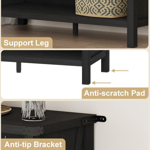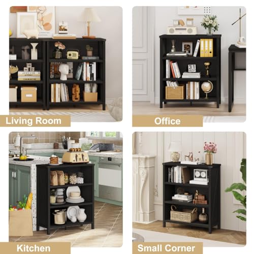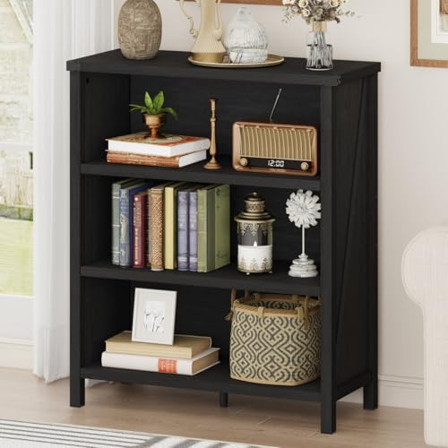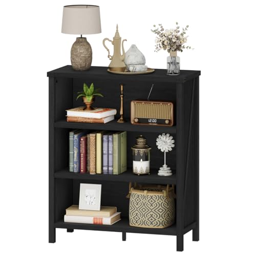 BON AUGURE - بون اوجيور رف كتب بـ3 ارفف، خزائن كتب خشبية بنمط بيت المزرعة، ارفف تخزين صغيرة للارضيات للمنزل والمكتب وغرفة المعيشة وغرفة النوم (خشب البلوط الاسود)