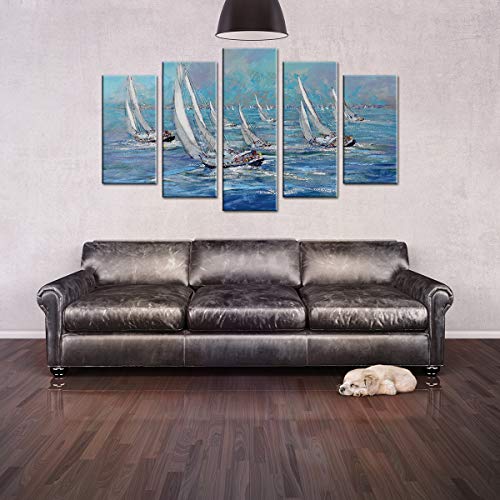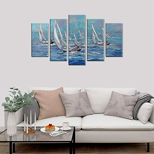 Bonamaison - طقم لوحات قماش للزينة 5 قطع - اشكال متعددة 2724709328156، أزرق