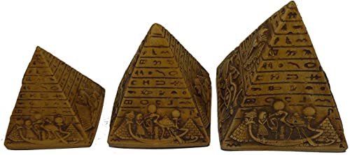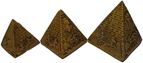 bonballoon - مجسمات اهرمات مصرية بكتابة هيروغليفية من الاساطير الفرعونية القديمة، مجموعة من 3 قطع منحوتات صغيرة ثلاثية الابعاد للديكور، مادة صمغية