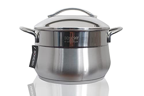 Bonera - قدر طبخ من بونيرا، مصنوع من الفولاذ غير القابل للصدأ، لون فضي، بتشطيب مصقول، سعة 24 كوب، يتميز بتصميم مدمج