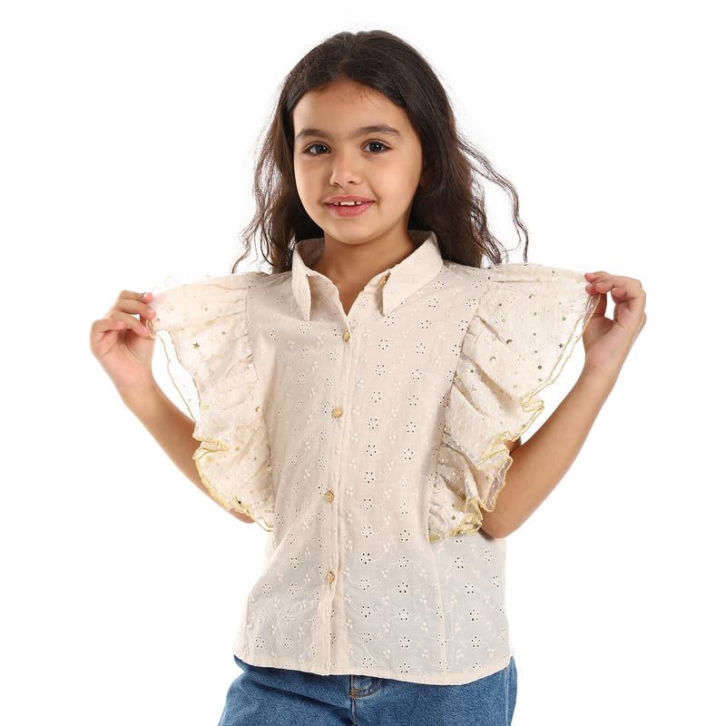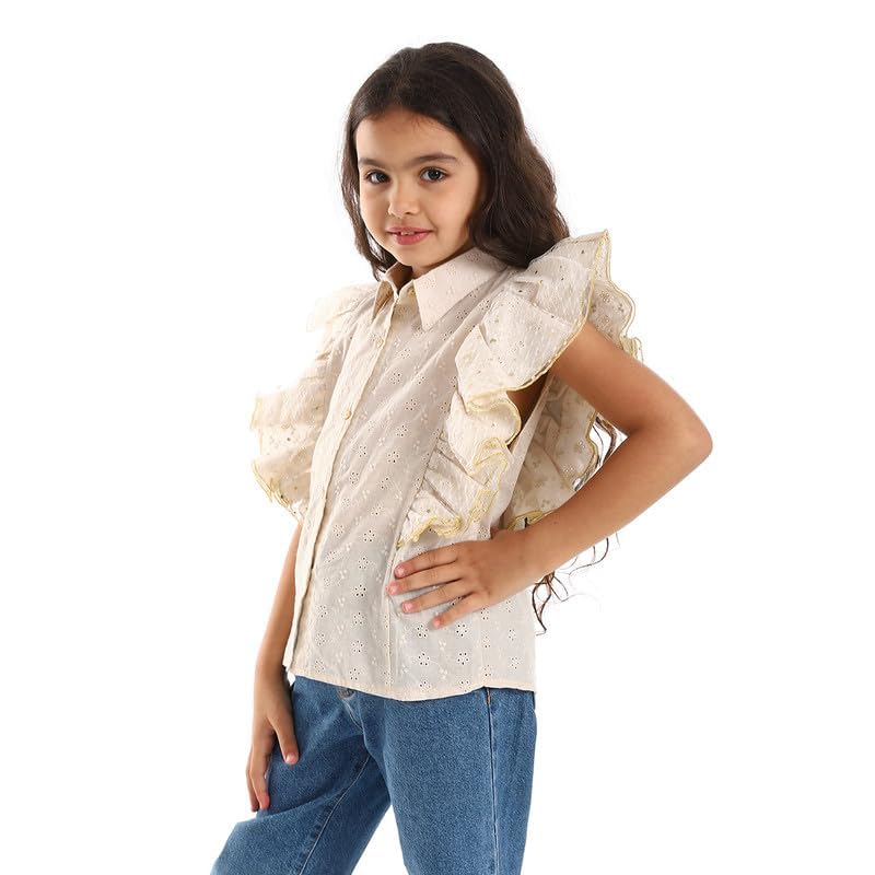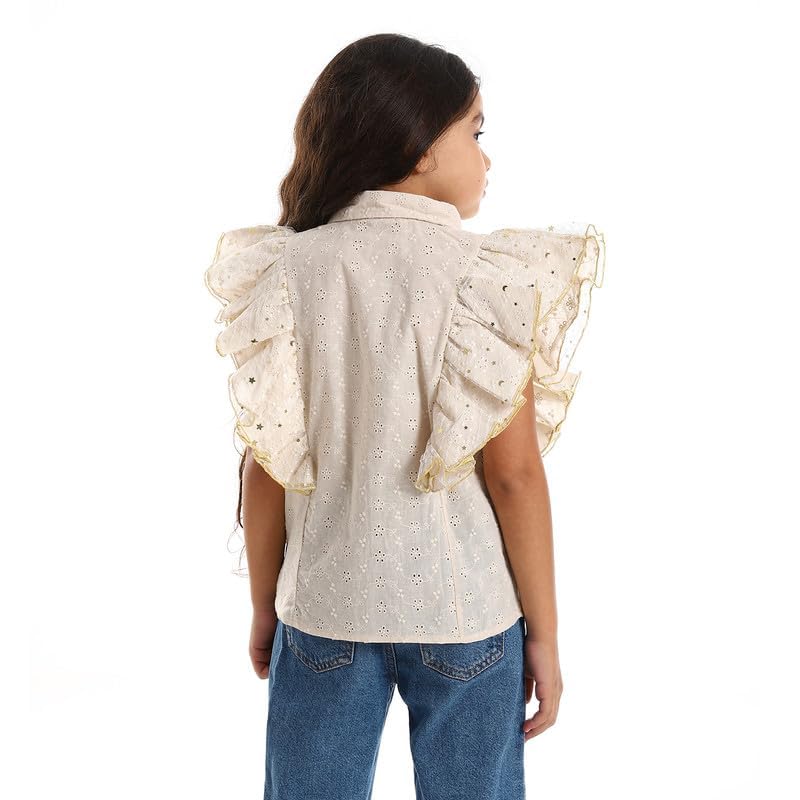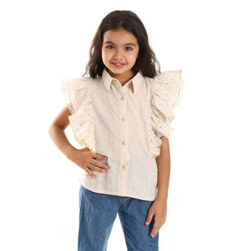 BONGO - قميص مخرم بكشكشة على الصدر وتصميم مشجر للبنات من بونجو - اوت, بيج، 4 سنوات