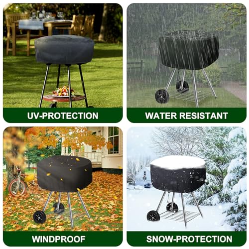 - 【【التوافق】 يناسب شواية الفحم ووك ايه اوت حتى 54.6 سم طول × 54.6 سم عرض × 36.8 سم ارتفاع. الغطاء غير مصمم لتغطية العجلات أو القدمين بالكامل، ويمكن للشواية التحرك بحرية مع وجود الغطاء.