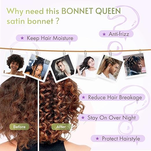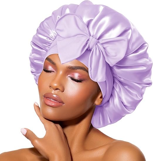Generic - بونيه شعر من الساتان للنوم للنساء والفتيات، شعر مستعار مع ربطة عنق قابلة للتمدد، حافة ملتفة بلون بنفسجي فاتح