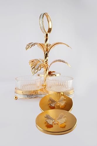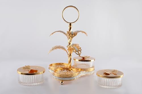 Generic - طقم تقديم فاخربنبونيره, حامل ذهبي بتصميم شجرة مرصع بالفصوص, أوعية زجاجية بلمسات كريستالية, مثالي للضيافة والمكسرات والتمور والشوكولاتة, قطعة ديكور للمناسبات والهدايا