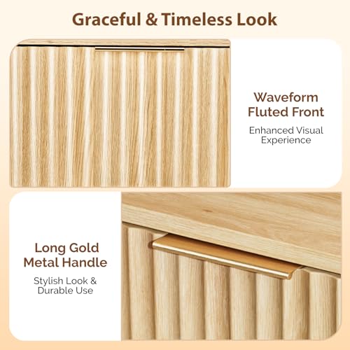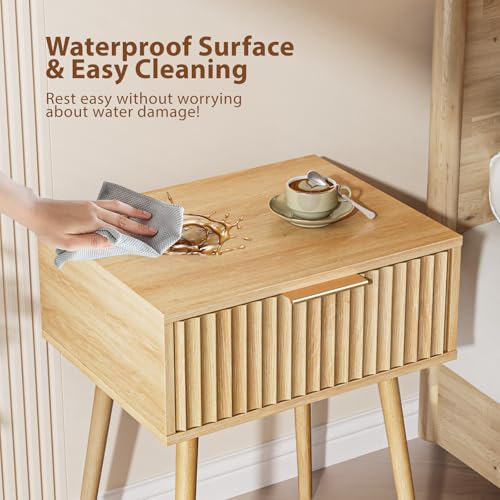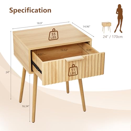 Bonnlo - بونلو طاولة بجانب السرير بدرج واحد، طاولة جانبية طويلة على شكل شبكة بارجل خشبية صلبة، ادراج تخزين عصرية بجانب السرير لغرفة النوم وغرفة المعيشة (1، بلوط، 48 × 38 × 60 سم)