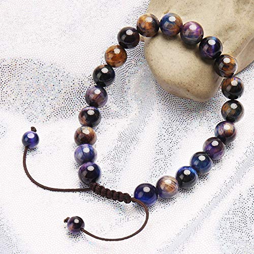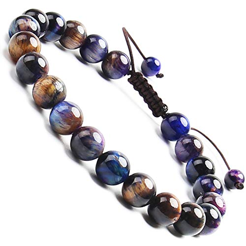 BONNY BOXX - اساور طاقة من الاحجار الكريمة الطبيعية مقاس 8 ملم للجنسين بوني بوكس، كريستال كوارتز شبه ثمين وحبل مضفر، لتخفيف التوتر، مكرمية ريكي