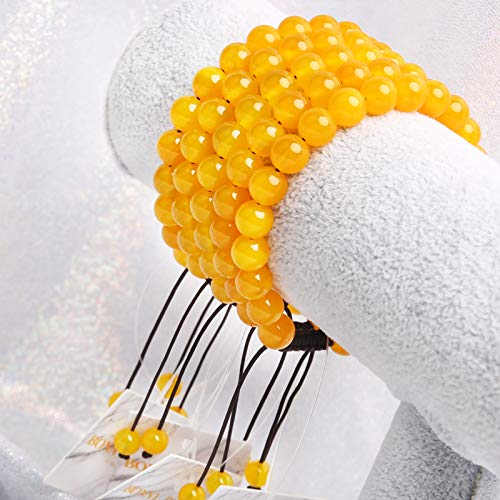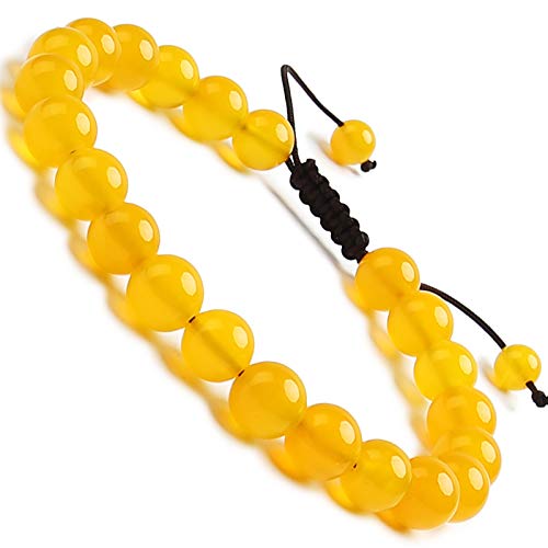 BONNY BOXX - اساور طاقة من الاحجار الكريمة الطبيعية مقاس 8 ملم للجنسين بوني بوكس كريستال كوارتز شبه ثمين وحبل مضفر لتخفيف التوتر مكرمية ريكي العقيق الأصفر