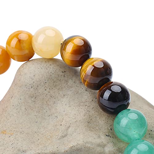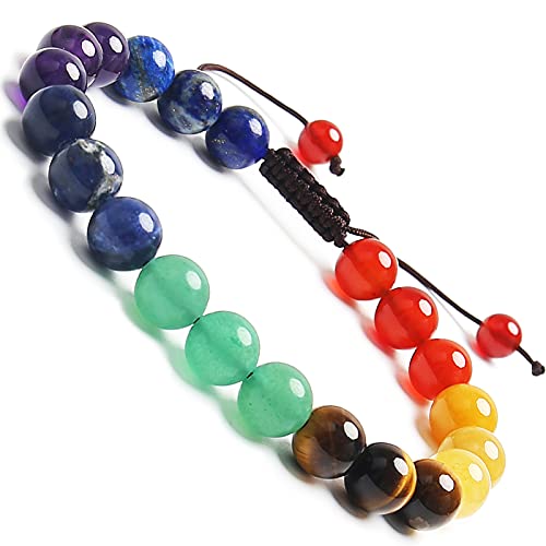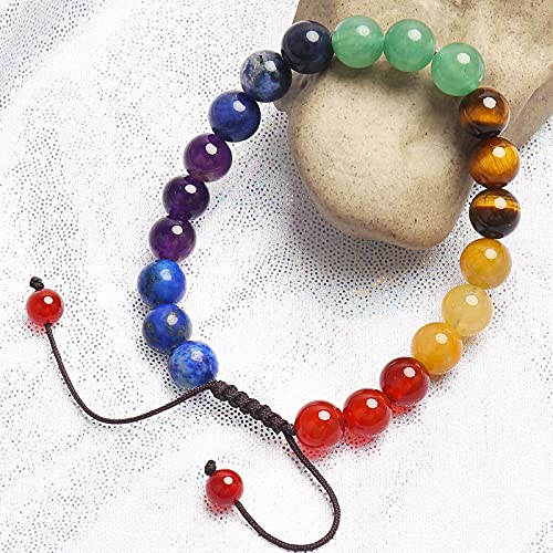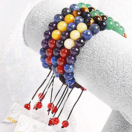 BONNY BOXX - اساور طاقة من الاحجار الكريمة الطبيعية مقاس 8 ملم للجنسين بوني بوكس كريستال كوارتز شبه ثمين وحبل مضفر لتخفيف التوتر مكرمية ريكي 7 شاكرا