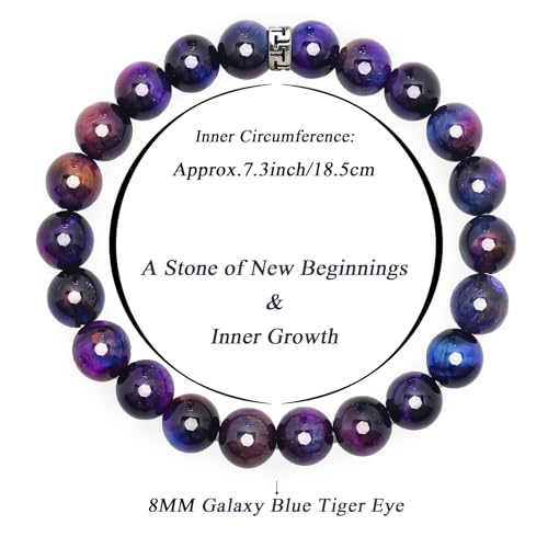 BONNY BOXX - سوار علاجي من الاحجار الطبيعية بوني بوكس احجار كريمة 8 ملم - مناسب للرجال والنساء - لتخفيف التوتر حجر كريم عين النمر المجرة