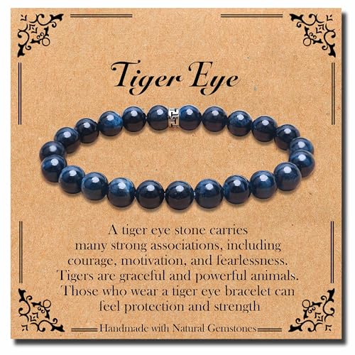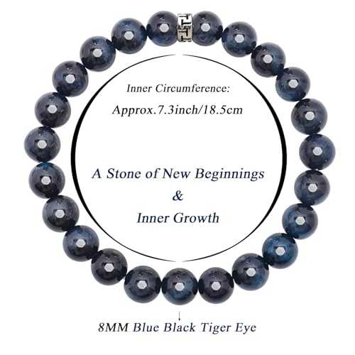 BONNY BOXX - سوار علاجي من الاحجار الطبيعية بوني بوكس احجار كريمة 8 ملم - مناسب للرجال والنساء - لتخفيف التوتر عين النمر الأزرق والأسود