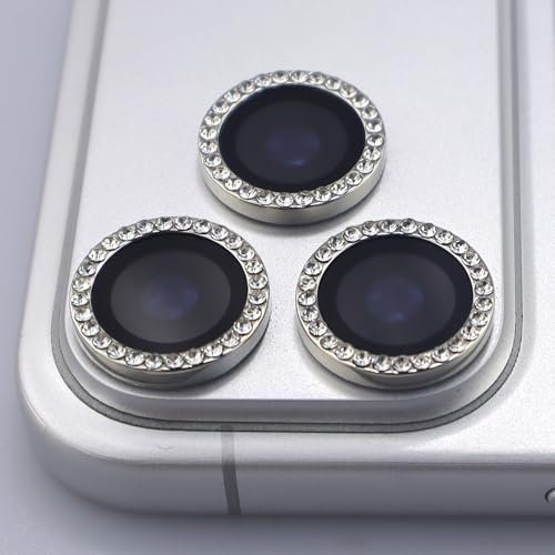 BONVAN - واقي عدسة الكاميرا من بونفان لموبايل ايفون 17 برو / 17 برو ماكس بلينغ جليتر من المعدن والكريستال والزجاج المقوى مرصع باحجار الراين لموبايل ايفون 17 برو/برو ماكس (فضي)