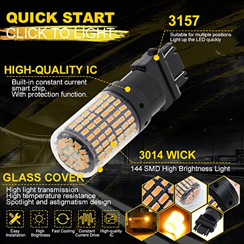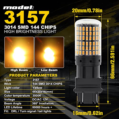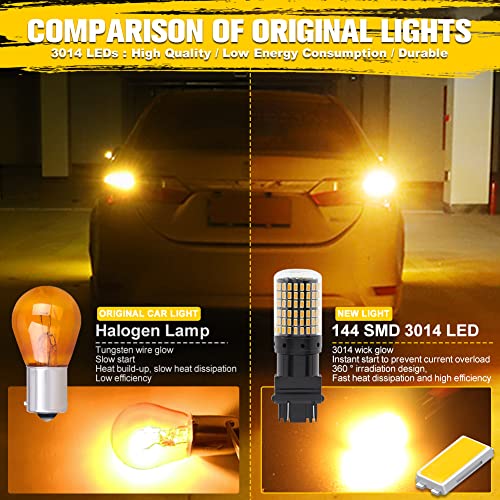 BOODLIED - مصباح ليد أحمر 19 وات 9-30 فولت 1156 800 كلفن 2500 لومن فائق السطوع 144-SMD 3014 رقائق 7506 93 3497 P21W BA15S لإشارة الانعطاف ومصباح إيقاف الفرامل العكسي من فائق (3156-3157، كهرماني)