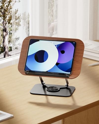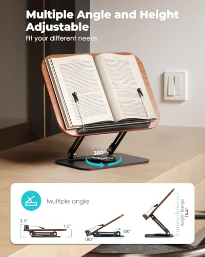 BOOMLONGDA - حامل كتب للقراءة، حامل كتب قابل للتعديل لسطح المكتب مع قاعدة دوارة 360 درجة ومشابك للصفحات، حامل كتب الطبخ قابل للطي للنتائج الموسيقية والوصفات والتابلت واللابتوب والكتب المدرسية