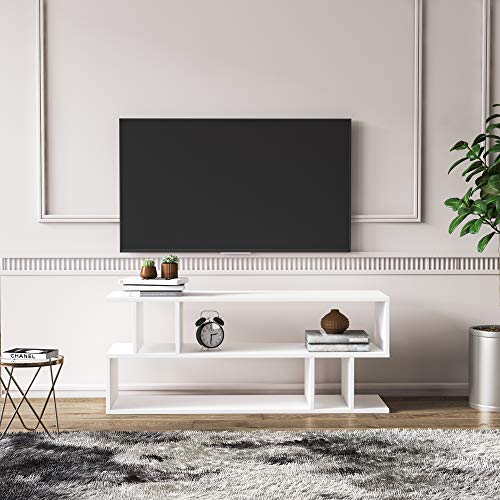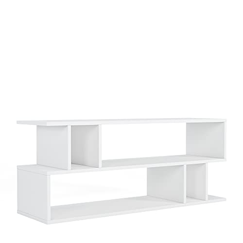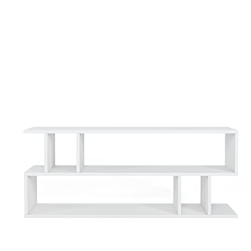 Generic - وحدة رفوف تخزين خشبية مع رفوف من طبقتين للمنزل والمكتب وغرفة المعيشة - خشب - طراز عصري - لون ابيض - قطعة واحدة - طراز 32