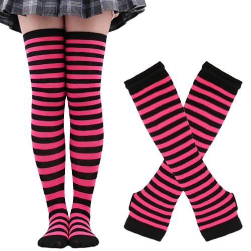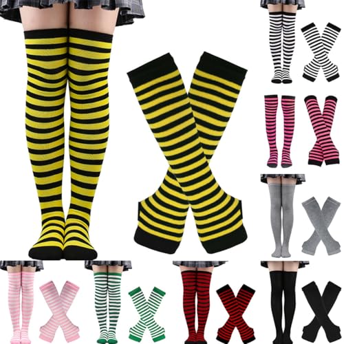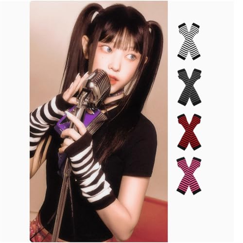 Boolygo - أكمام تدفئة للذراعين مع جوارب محبوكة [2 في 1]، أكمام بموضة الألفية دون أصابع للنساء والفتيات، أكمام ذراع لطيفة للخريف والشتاء، إكسسوارات جرونج لهاراجوكو من بوليجو