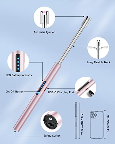 - 【رقبة مرنة طويلة 】تتميز ولاعة الشموع هذه برقبة مرنة طويلة، طويلة بما يكفي لإبقاء يديك بعيدًا عن ما تضيئه، ويمكن تدويرها بسهولة 360 درجة. تدخل في برطمانات الشموع بسهولة ومرنة للغاية! سهل التشغيل للغاية حتى في الظلام