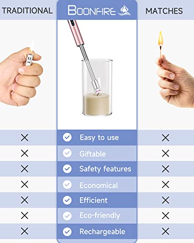 Boonfire - ولاعة شموع كهربائية قابلة لإعادة الشحن مع شاشة ليد للبطارية بمنفذ USB برقبة طويلة مرنة للشموع ومواقد الغاز والتخييم والشواء من بونفاير