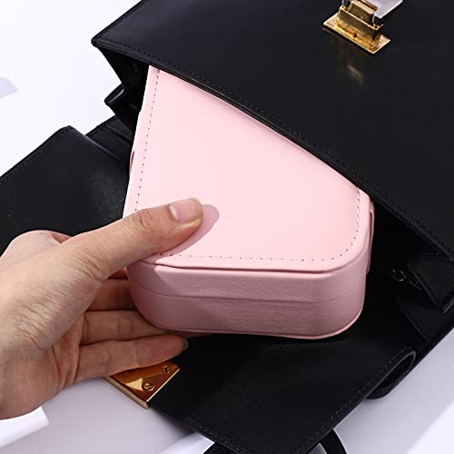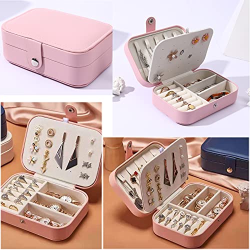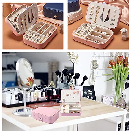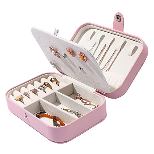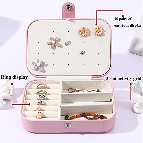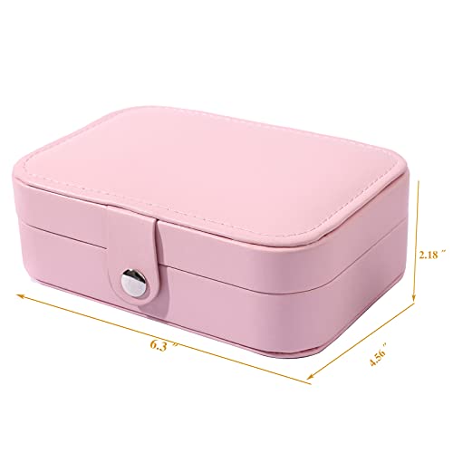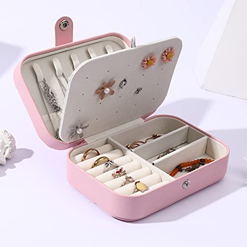 BOOVO - حافظة حامل مجوهرات صندوق منظم تخزين القلائد والخواتم محمول مزدوج الطبقات للسفر هدية للنساء والفتيات زهري من بي او جلد صناعي
