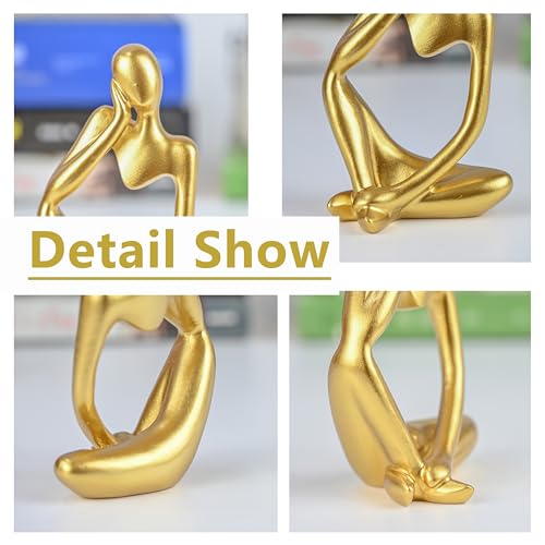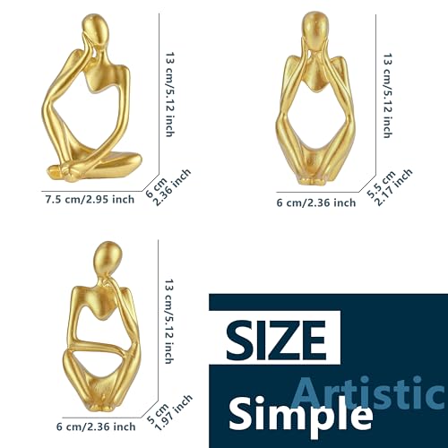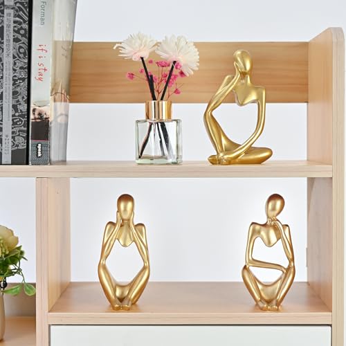 BOPART - مجموعة تماثيل مفكر لديكور المنزل والمكتب وغرفة المعيشة بنمط تجريدي من الراتنج الذهبي لتزيين رف الكتب والرف وطاولة القهوة من 3 قطع من بوب ارت