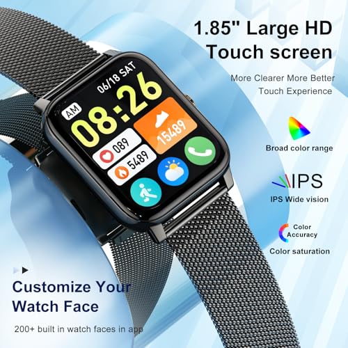 - ساعات بواجهة كبيرة للرجال والنساء: تعتمد الساعات الذكية للرجال والنساء على تصميم شاشة أكبر، وتأتي مع سوارين للساعات بألوان مختلفة. الإطار والسوار اللامعان يعززان بشكل مثالي أناقة الزي العام. تحتوي الساعة الذكية لموبايلات أندرويد على العديد من الواجهات المتاحة للاختيار من بينها. يمكنك أيضًا تخصيص واجهات الساعة بصورك الخاصة. يمكن لساعة آيفون الذكية المتوافقة أن تكون أي صورة، مثل أسرتك، حيوانك الأليف، وغيرها.