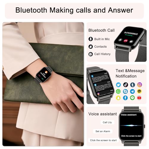 - ساعة ذكية مع الرسائل والمكالمات - ساعات iOS وأندرويد الذكية للنساء والرجال مجهزة بمكبر صوت شفاف، ساعة عداد الخطوات يمكن أن تستخدم مباشرة ساعة الرجال والنساء للرد على المكالمات / قراءة الرسائل / تشغيل الموسيقى / جهات الاتصال في المتجر، يمكنك الحصول على إشعارات بالمكالمات والرسائل القصيرة اس ام اس ورسائل اس ان اس وواتس اب والنصوص والفيسبوك وما إلى ذلك، يمكن للساعة الذكية التي تعمل بنظام أندرويد وiOS أن تدعم معظم موبايلات أندرويد وiOS (أندرويد 5.0 وما فوق iOS 9.0 وما فوق).).مثل متوافق مع آيفون وسامسونج وهواوي وما إلى ذلك