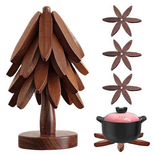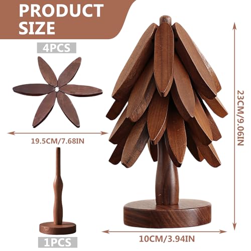 BORDEAG - قواعد اكواب بتصميم شجرة من بورديج، مجموعة من 4 قواعد اكواب خشبية، قواعد اكواب للاكواب والاوعية والاطباق واباريق الشاي والمقالي والاواني الساخنة