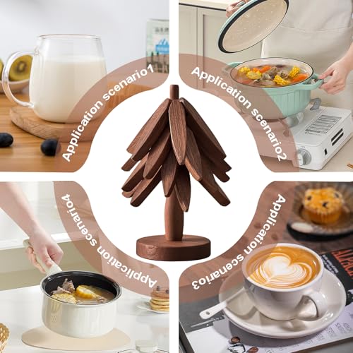 - هيكل خشبي عالي الجودة - قاعدة أكواب بتصميم شجرة مصنوعة من الخشب الصلب الطبيعي عالي القوة، وهو آمن وصحي وقوي ومتين. يمكنها تزيين أسطح العمل والمكاتب الخاصة بك مع حماية أسطح العمل بفعالية وسرعة من الأطباق الساخنة والمقالي في الغلاية.