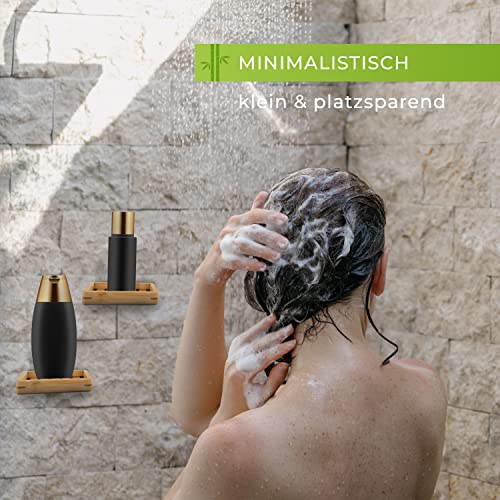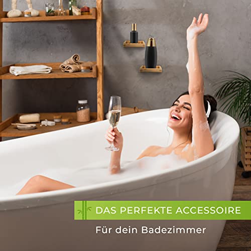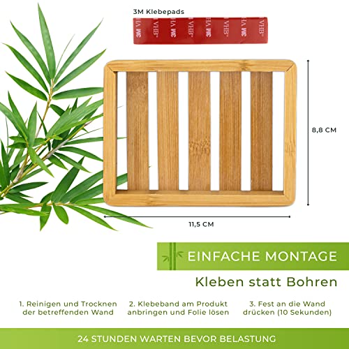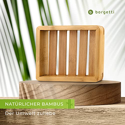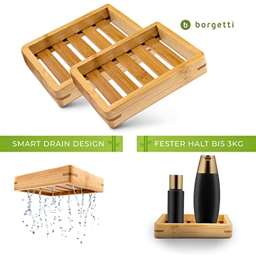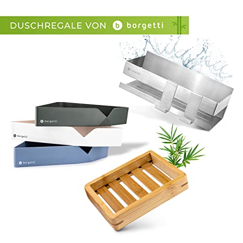 BORGETTI - رف صغير من الخيزران من بورجيتي، حجم صغير وموفر للمساحة، تصميم قوي للغاية مع شريط لاصق بتقنية 3M، عبوة مزدوجة، يأتي على شكل طبق صابون وصينية دش وحامل صابون وحامل شامبو ورف حمام