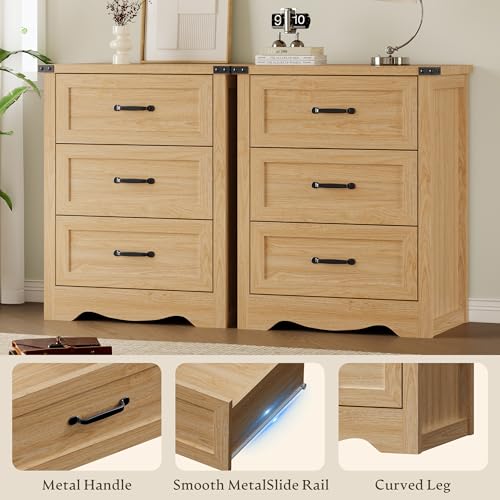 BORNOON - خزانة ملابس من 3 ادراج من بورنون لغرفة النوم، خزانة ادراج خشبية صغيرة بمقابض معدنية، خزانة تخزين ضيقة بتصميم مضاد للانقلاب، منظم خزانة قوي للخزانة وغرفة المعيشة والمدخل