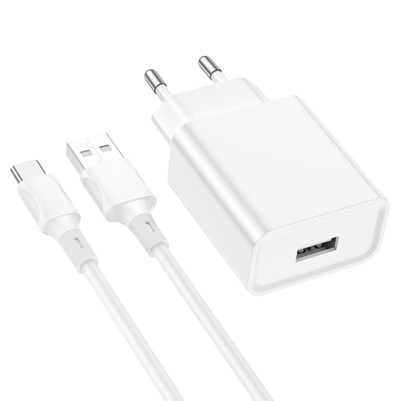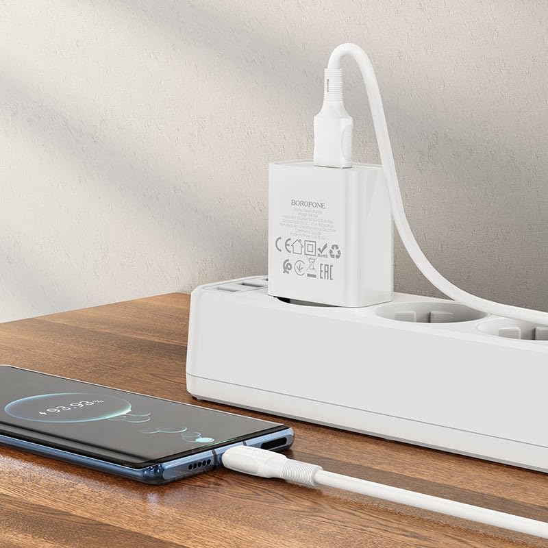BOROFONE - مجموعة شاحن اسبيرير بمنفذ واحد اوروبي نوع سي من بوروفون، ابيض، BA74A، USB