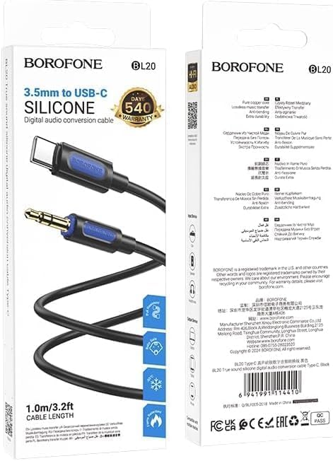 - جودة صوت ممتازة - يتميز كابل AUX BL20 من بوروفون بتقنية ترو ساوند، مما يوفر صوتًا عالي الدقة لتجربة استماع واضحة للغاية عند التحويل من صوت 3.5 ملم إلى أجهزة من النوع سي.