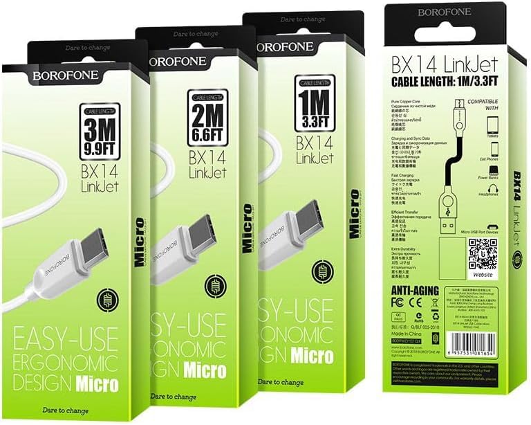 BOROFONE - كابل مايكرو يو اس بي لينك جيت bx14 من بوروفون، 2 متر - ابيض