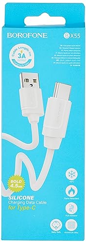 Borofone - كابل شحن ومزامنة بيانات هارموني Bx55 من السيليكون لمنفذ نوع سي من بوروفون، أبيض، USB