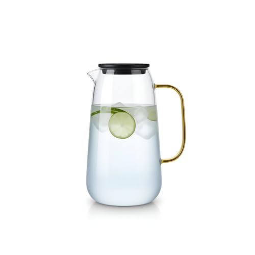 Generic - ابريق بوروسيليكات - موزع مشروبات زجاجي كلاسيكي مع غطاء للمشروبات الساخنة والباردة، مثالي للنبيذ والماء والعصائر والكوكتيلات، انيق ومرن للاستخدام اليومي